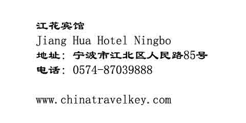 Jiang Hua Hotel Ningbo is a 2-star hotel, located at the converging point of Sanjiangkou, near the Old Bay of Ningbo. The hotel provides convenient transportation. It is 3.5km from the railway station, and 40km to the airport.