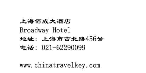 Broadway Hotel Shanghai has more than 50 guestrooms. All rooms are equipped with air conditioning, satellite TV, IDD, DDD and internet access.