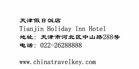 Situated in the north of the city, the Holiday Inn Hotel Tianjin, although up to the usual standards of Holiday Inn excellence, is a little out of the way. The hotel is is located along the Hai He River at the intersection of a main avenue, Zhong Shan Road and Tian Wei Road. It is conveniently located next to an office tower, providing easy access to the commercial and business areas in the city.