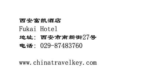 Fukai Hotel Xian is a 4-star standard hotel located in the city center, near the Xincheng Square. The goverment of Shangxi and the most busiest commercial district are around this hotel. It is conveniently close to major Xian attractions, such as Bell Tower, Big Goose Pagoda.