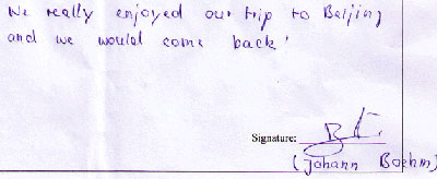Testimonial of Beijing 2 Days Tour: Testimonial of Beijing 6 Days Tour Including Hotel: Testimonial of Beijing 4 Days Tour: Testimonial of Beijing Deluxe Tour: Testimonial of Beijing 7 Days Tour: Testimonial of Beijing 5 Days Tour: Testimonial of Beijing Deluxe Tour: Testimonial of Mutianyu Great Wall Tour: Testimonial of Beijing Xian One Day Tour: Testimonial of Beijing Xingang One Day Tour: See more Beijing Tour Testimonial Beijing Tour Testimonial Page 1 Beijing Tour Testimonial Page 2 Beijing Tour Testimonial Page 3 Beijing Tour Testimonial Page 4 Beijing Tour Testimonial Page 5 Beijing Tour Testimonial Page 6 Beijing Tour Testimonial Page 7 Beijing Tour Testimonial Page 8 Beijing Tour Testimonial Page 9 Beijing Tour Testimonial Page 10